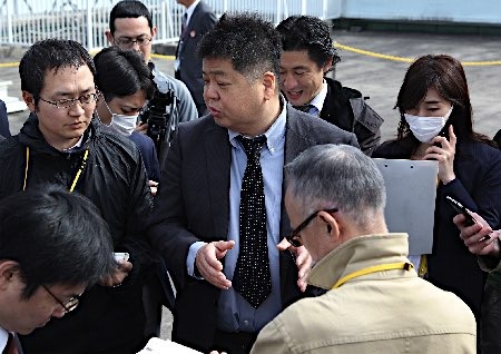 防卫装备厅事业监理官吉田孝弘(中)对媒体解释