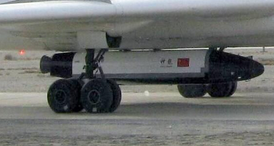 轰6战机机腹加挂一种新型航天飞行器