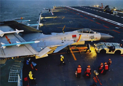 另据媒体报道,歼-15满载滑跃起飞时,轮胎与甲板之间巨大的摩擦力会导致擦痕有明显的变化。所以,有军事专家推断,歼15已经实现了满载起飞的试验。据悉,辽宁舰航母舰载机试飞员们已经通过了上千架次的起落训练,而这个过程仅仅用了几个月的时间,打破了当时许多外国军事专家认为的中国熟练掌握航母舰载机起降至少需要二年的预测。