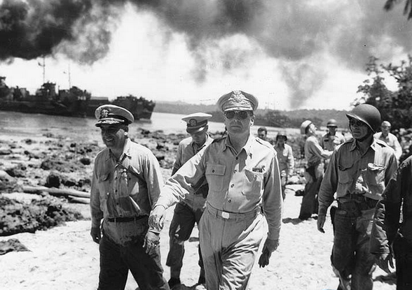 1945年8月15日,日本宣布无条件投降。30日下午两点,美军将领麦克阿瑟乘坐的"巴丹"号座机抵达东京郊外的厚木机常在鼓乐声中,麦克阿瑟志得意满,叼着玉米棒芯烟斗走下舷梯,他将作为盟军最高司令官、7500万日本人的绝对主宰者开始统治日本。此时的麦克阿瑟对日本军国主义恨之入骨,他一到任就下令解除日本武装,逮捕战犯。随后,美国公布了"战后初期对日政策",表明美军将在日本实施宗教信仰自由,并禁止日本人打着宗教的旗号,搞极端国家主义和军国主义组织及运动,矛头直指靖国神社。