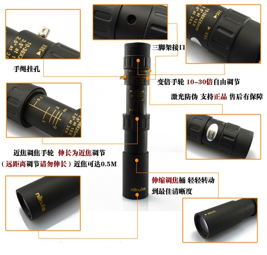 这是一款纯正狙击镜血统的望远镜。严格来说,狙击镜其实是望远镜的一种。狙击手用来执行狙击任务的特殊瞄准镜,通常有刻度或特别设计的瞄准线,可供狙击手快速估计距离或修正风偏、前置量。现代美军狙击手使用的是放大倍率10倍的瞄准镜,瞄准线为特别设计的 Mil-Dot 型式。由于使用条件和环境的需要,狙击镜的抗震性也非常强的。
