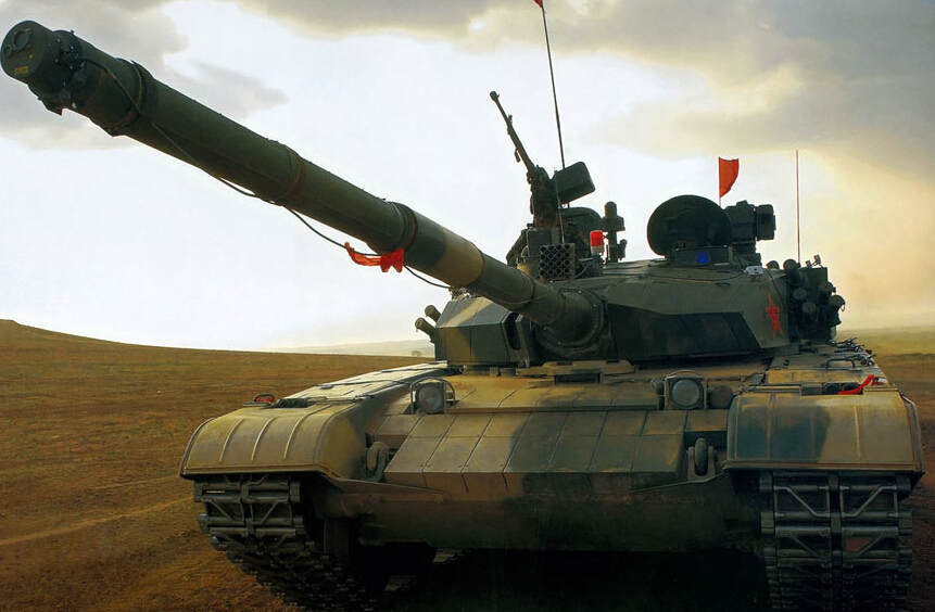 中国99式:99式是中国军队的主力坦克,在1999年首次公开展示。其重量因装甲厚度增加而达到了54吨。99式配备1500马力的柴油发动机。其125毫米口径滑膛炮可发射激光制导导弹。