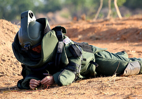 金发女郎穿着防护衣走入地雷阵,经受多次爆炸仍然毫发无损。俄副总理罗戈津形容,士兵穿上防护衣后“比未来战士更强悍”。
