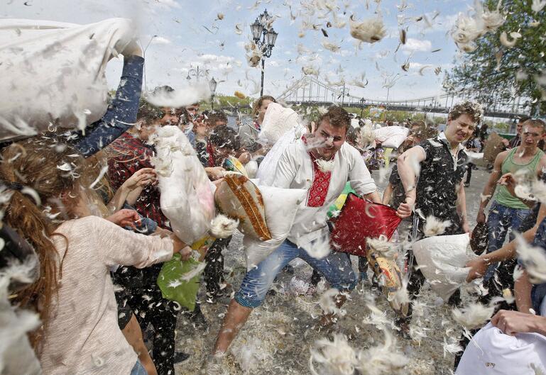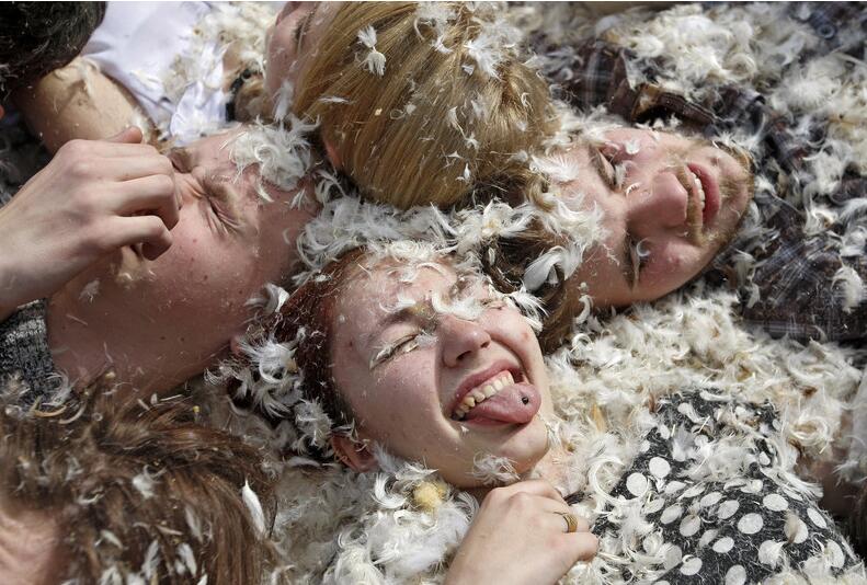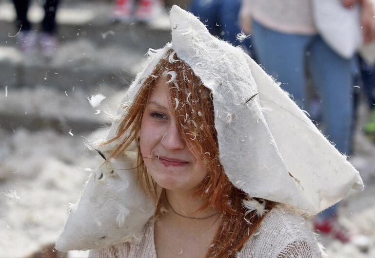 乌克兰举办枕头大战 现场变羽毛海洋