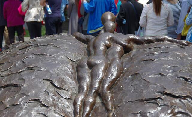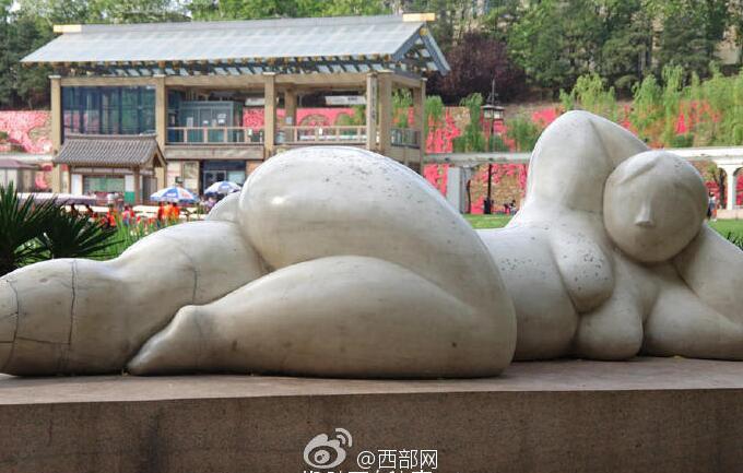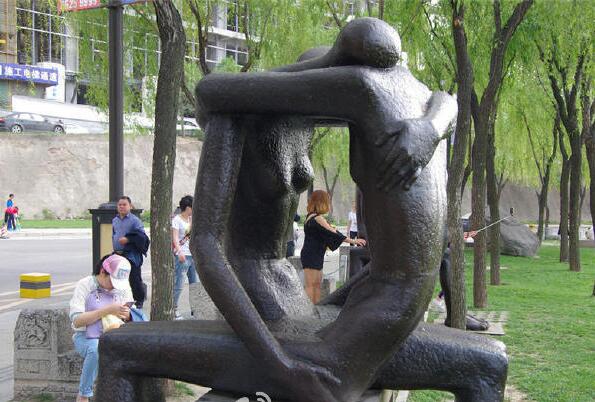 热吻裸体雕塑现西安公园 妈妈拉孩子绕开