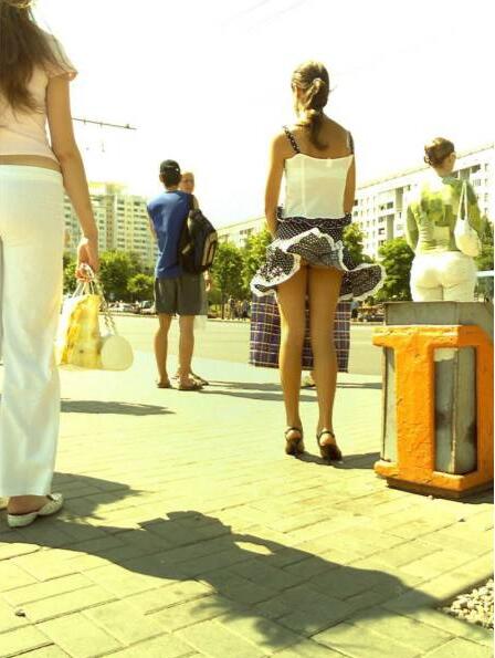 美女也有烦恼 裙摆飞起好尴尬