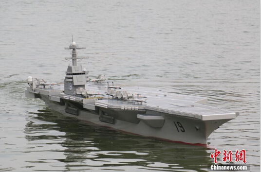 5月6日,河南周口沙颍河上演一场“航母海战”,号称国内最大的一艘航母模型“河南号”带领4艘驱逐舰参与“海战”演习。演习分红、蓝两方。经过近20分钟的激烈战斗,红方在航母的火力支援下,“舰艇”和“飞机”顺利登陆岛屿。这场在周口沙颍河上首次进行航模表演的“海战演习”活动吸引了众多市民围观。河南省社会体育管理中心海南省航海模型运动队队长王云飞介绍,该航母模型命名为“河南号”,是按照1∶55制作比例打造,全长6米,宽1.5米,高0.7米,满载排水量为800公斤,采用双电机推进,最高航速为25千米/小时,续航时间90分钟。在它的甲板上,装载着20多架作战飞机和一些车辆设备(模型),可以起降飞机和直升机,舱内还装备了各种火炮和火箭发射装置。该艘“河南号”航母模型共花费十几万元,总重超过500公斤。